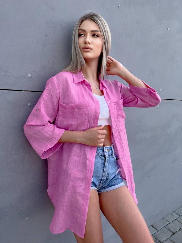 Снижка цены❗️ Летняя легкая рубашка на пуговицах, рукав на регулируемой шлейки 🌺 Тканина: котон-вуаль 100 % бавовна Размеры: с-м; л-хл Размер: с-м (42-46) Об.гр. 106 см Дл. рукава 59 см Дл. рубашки по спинке 80 см. Размер: л-хл (48-50) Об.гр. 116 см. Довж. рукава 61 см Дл. рубашки по спинке 82 см.
