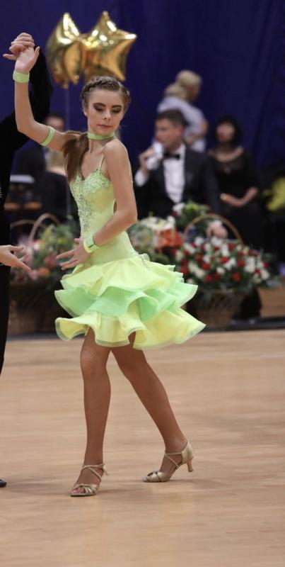 Яскраве латинське плаття для бальних танців. Сукня дуже яскраво виглядає на паркеті і все переливається. Дорога крисановская тканину і каміння Сваровські. Плаття дуже зручне і добре сидить на дівчинці. Підійде і на супер худишку і на гарненьку дівчинку)) Відмінно підкреслить декольте і відкриє ніжки. Хороший пошиття. Підійде на зріст до 165. Сукня у відмінному стані. У комплекті йдуть 5 браслетів.