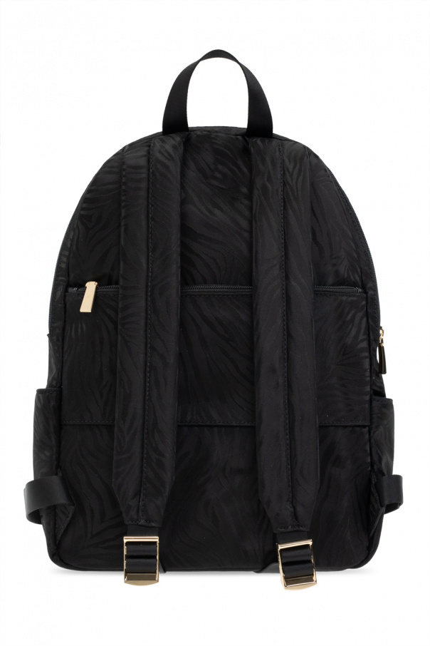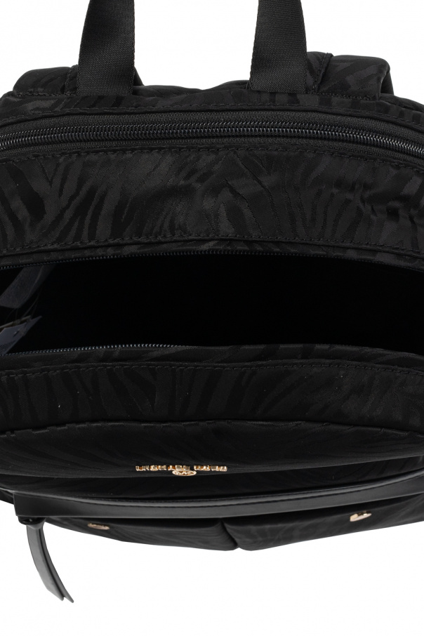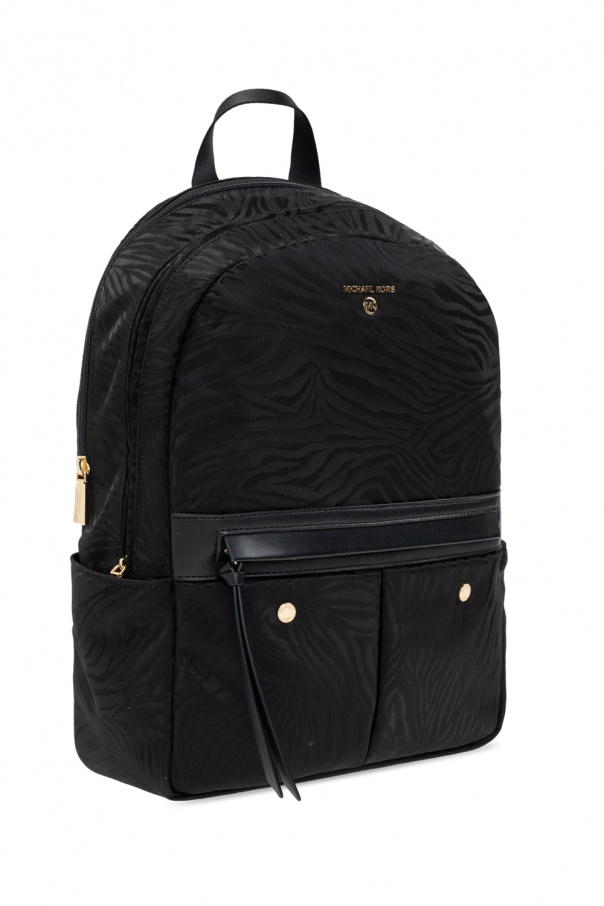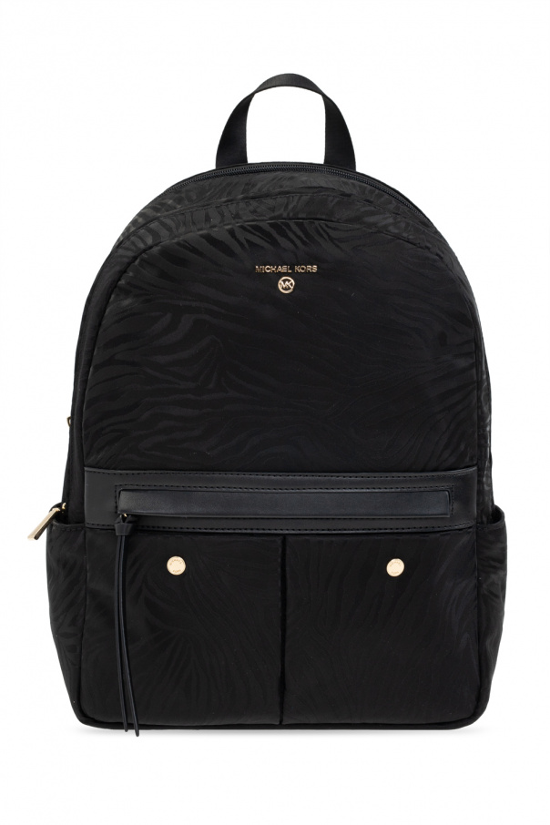 Black ‘Prescott’ backpack from Michael Michael Kors. Equipped with multiple pockets for added utility, this design features two separate zip compartments, a logo plaque on the front, a half-round handle, adjustable shoulder straps and gold-tone metal hardware.