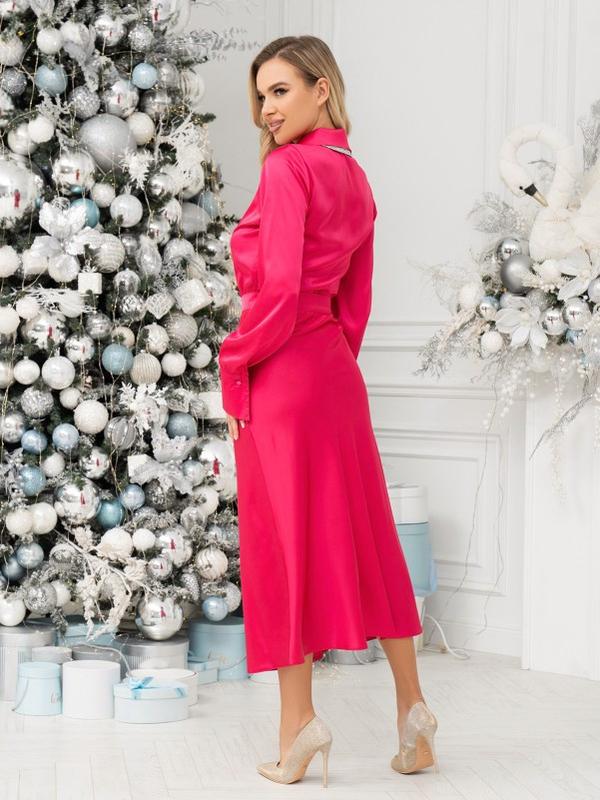 Обмежена кількість (під час замовлення уточнити наявність потрібного розміру) - Розмір: XS, L - Матеріал: Шовк - Склад: 80%, шовк, 20%, поліестер Шовкова сукня в класичному стилі з вирізом на грудях та знімним поясом. Модель з гумкою на талії, блискавкою і міді довжиною. Сукня з довгими рукавами на подовжених манжетах оснащена коміром.
