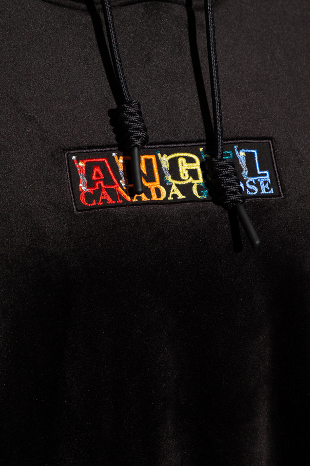 Black hoodie from Canada Goose. Decorated with a multicolored logo embroidery, this garment features a drawstring hood, sleeve appliqué with a logo and ribbed trims at the hem and cuffs.