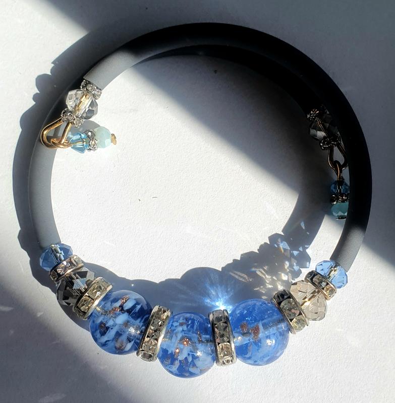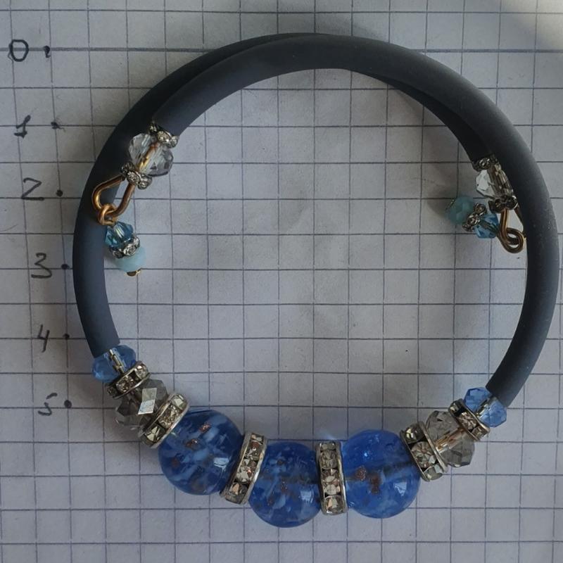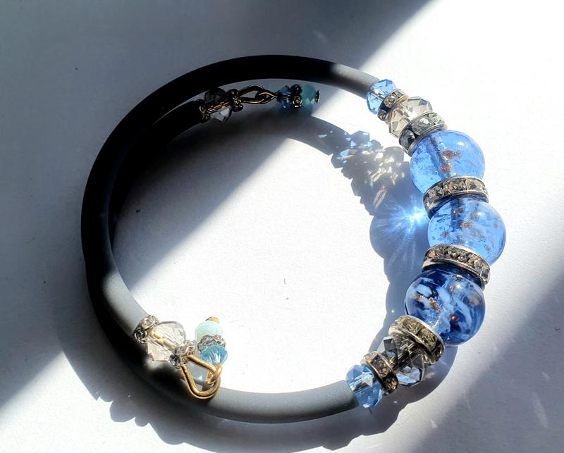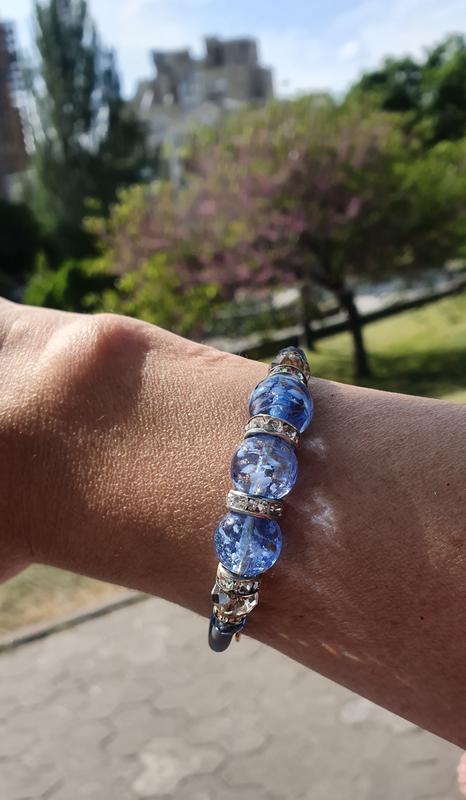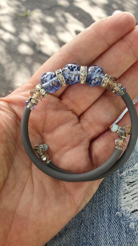 Невероятно красивый браслет с муранским стеклом. Основа браслета из каучука серого цвета. В живую очень красиво смотрится, на солнышке играет невероятно. На любое запястье, адаптируется.