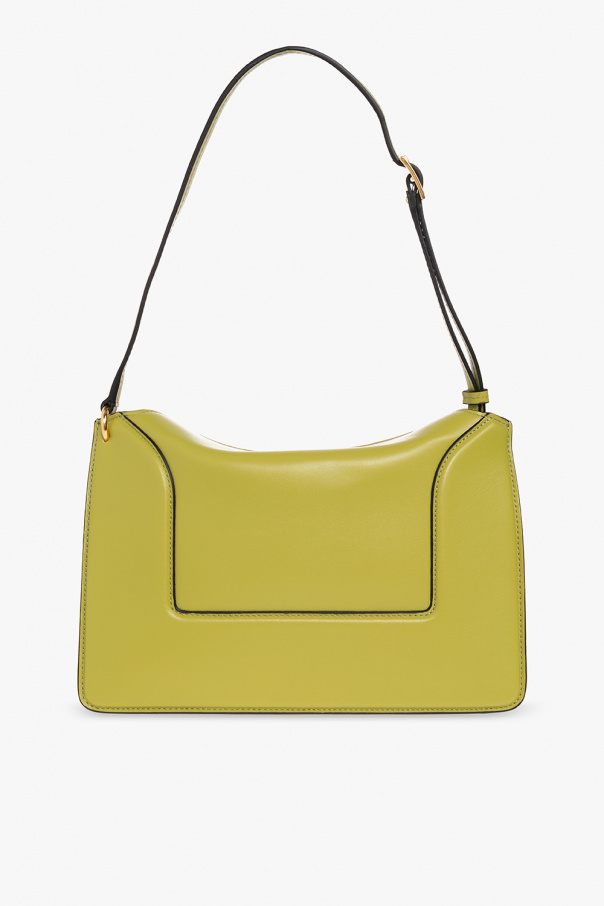 Green ‘Penelope’ shoulder bag from Wandler. Crafted from soft, vegetable-tanned calf leather from sustainable sources, this design secures with magnetic snap closures and features side adjusters, a gold-tone logo print on the front, an adjustable strap, gold-tone metal hardware and one internal compartment with a divider.