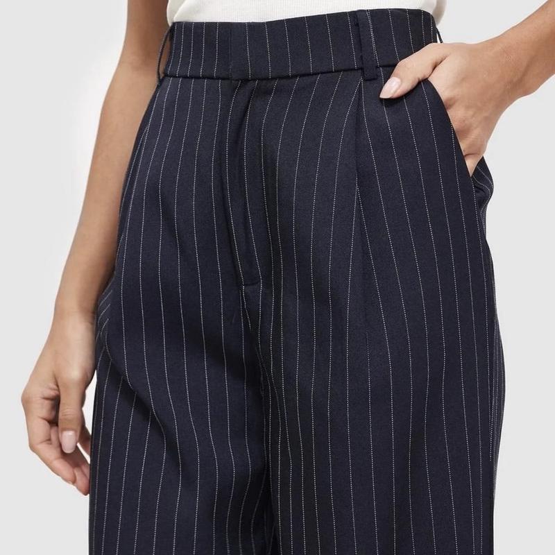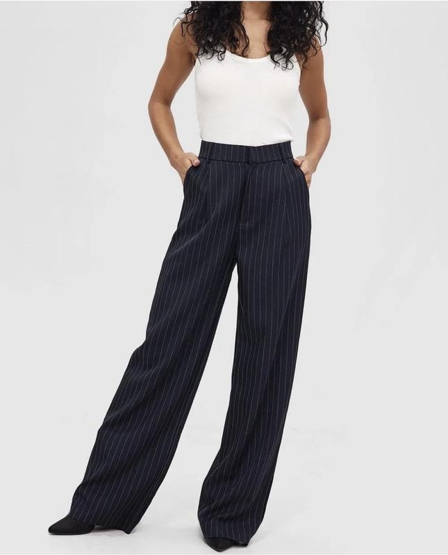 Трендовые брюки прямые широкие в полоску темно синие на высокий рост подходят 💥 заміри надам