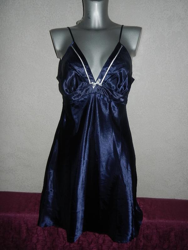 Предлагаю Вам брендовое белье. Великолепный фирменный пеньюар отменного качества, из атласного полиестра. Красивая стильная расцветка. В морском стиле. сочетание темно синего мс белым. На тонких регулируемых бретельках. Зона декольте декорирована атласным бантиком. Подойдёт на большой размер груди. Очень и очень красивый!!! Смотрится очень нежно и сексуально! Без бумажной бирки, новый. Размер указан /EUR–36-38, но идет на наш 38 (S) Длина от плеча - регулируется бретельками Длина по боковому шву - 70 см ПОГ - 50 см По под грудью - 41 см ПОТ - 47 см ПОБ - 64 см Ширина всего подола – 145 см Новый