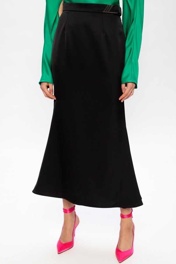 Black skirt from The Attico. Fastened with a zip and hook, this flared design has a belt with a decorative buckle in silver-tone.
