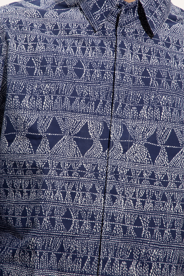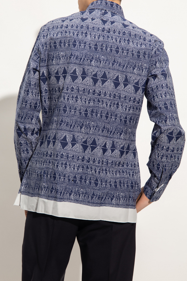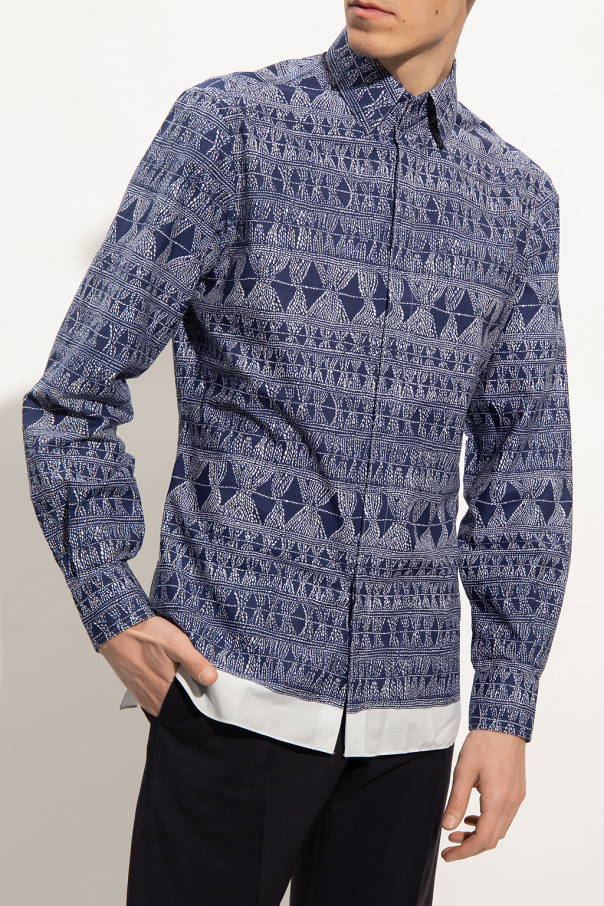 Navy and white shirt from Salvatore Ferragamo. Made of cotton, this garment features a pattern, buttons with a concealed placket, side vents and long sleeves with button cuffs.