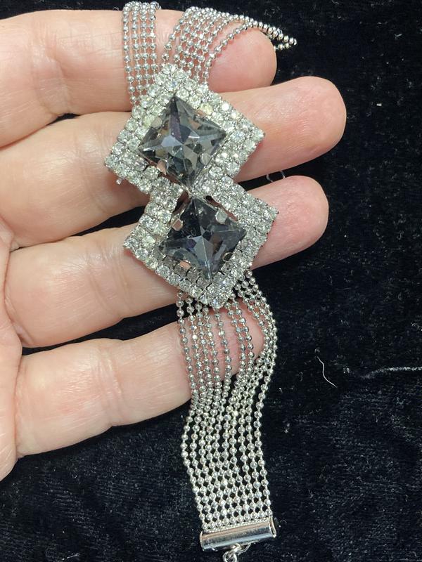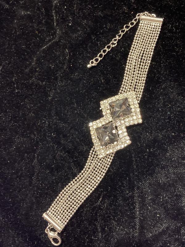 Браслет в серебряном тоне на цепочках украшен кристаллами длина 15+5см