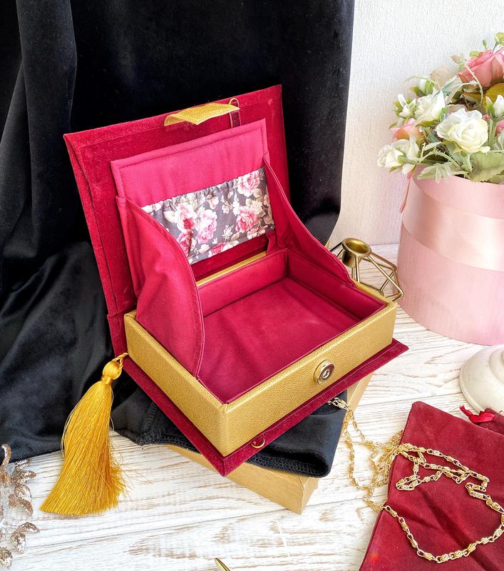 Клатч-книга «Анна Каренина». ✔️обложка - бордовая экозамша. ✔️ручная роспись золотом. ✔️короб деревянный, обтянут экокожей, цвет винтажное золото. ✔️застежка - магнитная кнопка. ✔️шелковая кисть золотого цвета. ✔️внутри подкладка из хлопка. ✔️кармашек. ✔️золотая цепочка. ✔️подарочный мешочек для хранения в комплекте. . ✅В наличии. Доставка включена.