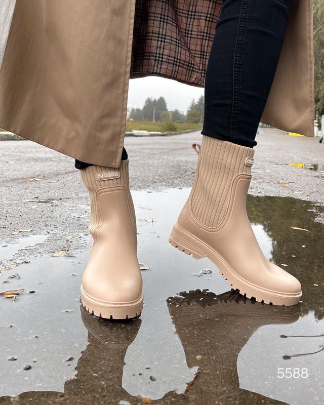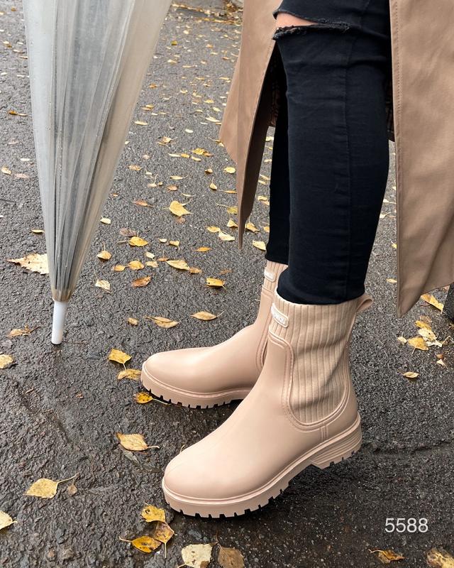 Те самые резиновые ботиночки 💦💦💦 MUST HAVE в дождливую погоду ☔️🔥 Код 5588 беж Код 5589 черные Материал-резина. Внутри текстиль. Подошва 3/2см. Высота до подошвы 17,5см. ☝️На не высокий подъем. На чуточку более широкую стопу рекомендуем выбирать на размер больше. 36-23,5 см 37-24 см 38-24,5 см 39-25 см 40-26 см Цена 1200 грн