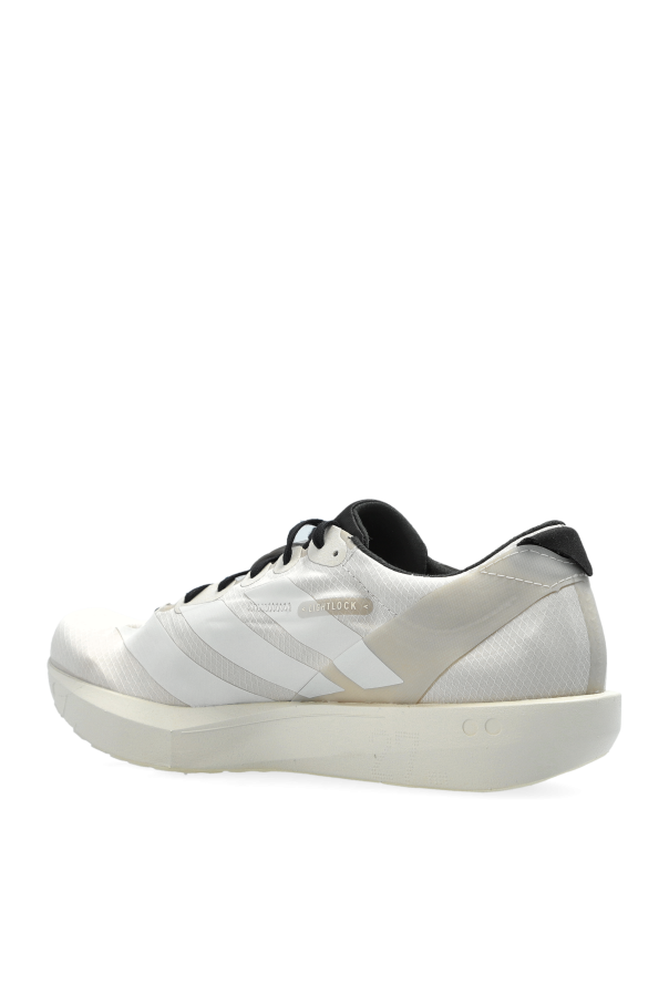 Introducing the Adios 9 Training Shoes—a masterpiece of athletic elegance and innovation. Crafted by the renowned designer Y-3 Yohji Yamamoto, these shoes epitomize the harmonious fusion of high fashion and athletic functionality. These sneakers boast a sleek, aerodynamic silhouette, accentuated by a minimalist design with subtle lines and details. The upper, made from the advanced LIGHTLOCK material, is both lightweight and breathable, adjusting seamlessly to the foot\'s natural contours. The creamy hue, complemented by black and silver accents, exudes sophistication, while the black laces and white midsole offer a striking contrast. Featuring the \"ADIZERO\" label and \"Continental\" logo, these shoes guarantee enhanced grip with their special rubber sole. With the Lightstrike Pro midsole cushioning and LIGHTTRAXION outsole, these shoes provide unparalleled comfort and weightlessness, ensuring every step is confident and cushioned. Why Choose This Product? Sleek, aerodynamic design for a modern look Lightweight and breathable upper for optimal comfort Enhanced grip with Continental rubber sole Exclusive design by Y-3 Yohji Yamamoto Perfect blend of fashion and functionality