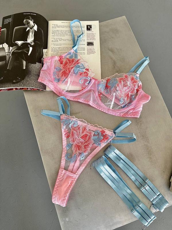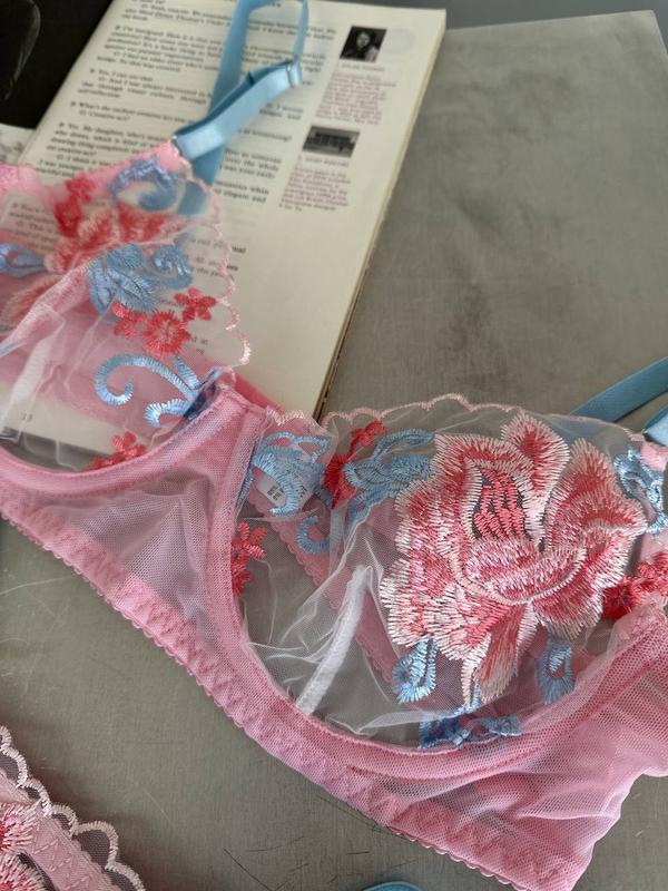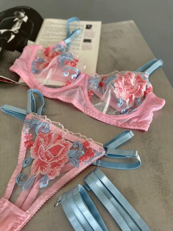 !Важно!! Не весь товар отправляется одной посылкой. ❗❗ Предварительно о наличии уточняйте в чате, пожалуйста.❗❗ Изящный комплект во всех отношениях - нежный и непринужденный. Нежная сеточка декорирована качественной вышивкой из цветов, а цветовое сочетание притягивает с первого взгляда. Лямки с регуляторами как на бюсте, так в на трусиках. ◾️Модель 803 ◾️Размер: - М маркировки 80-85ВС, трусики ОБ 90-100 см