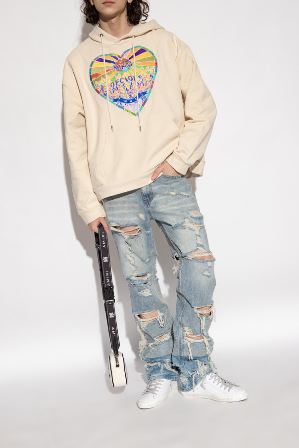 White and blue ‘PRSX Low’ sneakers from Philippe Model. Made of leather, this lace-up pair features a logo pattern, vintage effect and blue rubber sole.