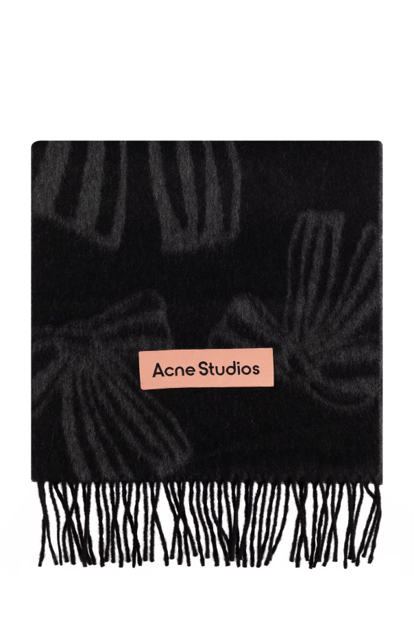 Introducing the Wool Scarf with Logo from the illustrious Acne Studios collection, a paragon of sophistication and timeless elegance. Crafted from luxuriously soft wool, this black scarf features a subtle pattern in a darker hue, enhancing its refined allure. The centerpiece of this exquisite accessory is the understated yet distinctive pink logo patch of Acne Studios, elegantly positioned at the scarf\'s center. The classic fringed ends add a touch of traditional charm, making it a versatile unisex piece that elevates any ensemble. In line with Acne Studios\' philosophy, this scarf embodies practical minimalism and avant-garde design, reflecting the brand\'s commitment to superior quality and innovative style, envisioned by the renowned founder, Jonny Johansson. Why Choose This Product? Exquisite craftsmanship using 100% wool. Unisex design with a timeless aesthetic. Signature pink logo patch for a distinctive touch. Classic fringed detailing for added elegance. Perfectly embodies Acne Studios\' avant-garde philosophy.