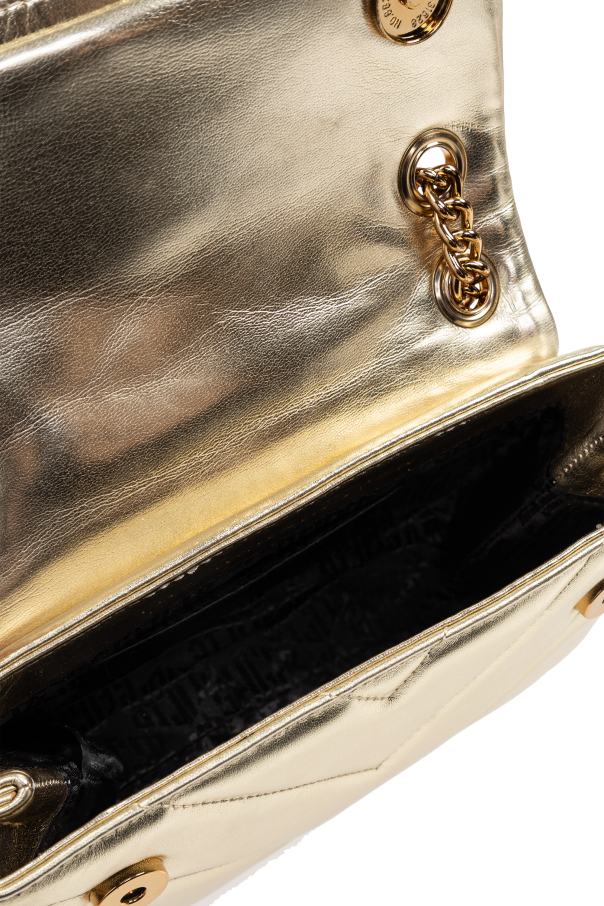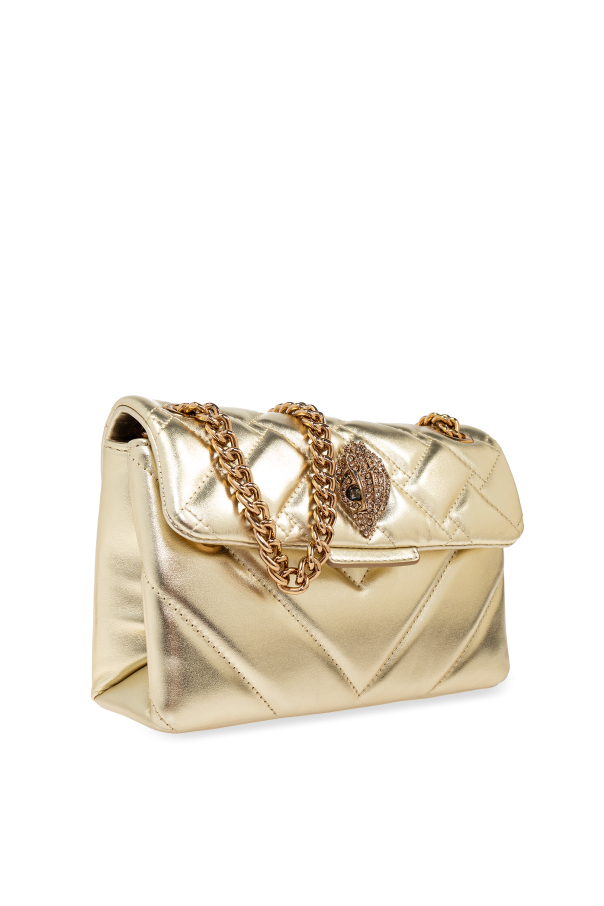 Introducing the exclusive Kensington Mini Quilted Shoulder Bag from the esteemed designer Kurt Geiger. This masterpiece embodies elegance with its classic rectangular shape and sophisticated V-shaped quilting. Draped in luxurious golden leather, it exudes an aura of opulence, making it a quintessential accessory for those with a discerning taste. The bag is adorned with an ornate animal-head embellishment, likely a snake, encrusted with sparkling stones on the front flap, adding a touch of glamour. The exquisite golden chain strap enhances its refined character, offering both style and functionality. With a magnetic closure, accessing the interior is both seamless and convenient. The interior, lined with black fabric, provides a striking contrast, further elevating its elegance. Compact yet exceedingly chic, this bag is an ideal companion for evening soirées and special occasions. Why Choose This Product? Exclusive design by renowned designer Kurt Geiger Luxurious golden leather with V-shaped quilting Ornate animal-head embellishment with sparkling stones Elegant golden chain strap for a sophisticated look Convenient magnetic closure for easy access
