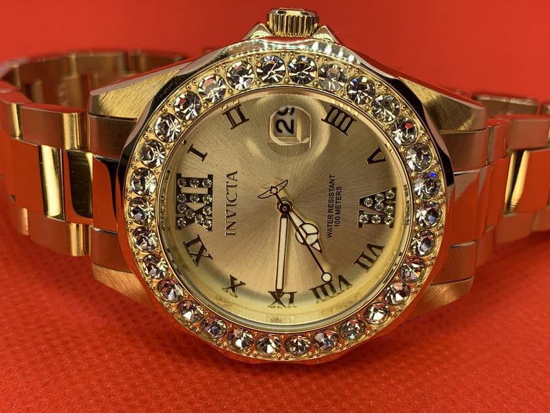 Оригинальный женские наручные часы Invicta Элегантны женские часы от Invicta. В аккуратном корпусе диаметром всего 38мм. Золотое покрытие выполнено по запатентованной технологии и прослужит долгие годы оставаясь в первозданном виде. Ободок и циферблат украшен декоративными камнями, что делает модель еще более изысканной, особенно с золотым цветом корпуса, браслета и циферблата. Профессиональная водозащита. Японский кварцевый механизм. Светонакопитель на стрелках и метках, хорошо читается даже в темноте. Литой металлический браслет. Закаленное по специальной технологии Flame Fusion стекло, почти не уступает по твердости сапфиру. Основные характеристики: - Японский кварцевый механизм - Калибр PC32A - Стекло закаленное Flame Fusion - Диаметр корпуса 38 мм - Толщина корпуса 12 мм - Корпус нержавеющая сталь - Металлический браслет - ширина 18 мм - Водозащита 100 м - Гарантия 2 года Старая цена: 4750 грн Цена по скидке: 3900 грн Только оригиналы. Лучшее качество и характеристики за свою цену. Фирменная упаковка в комплекте. Больше моделей в других объявления автора.