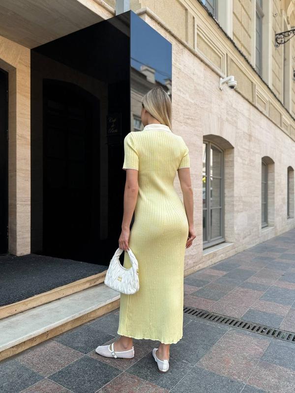 Минималистичное платье-поло из приятного к телу трикотажа. • Размер универсальный 42-46 Длина 130 см • ОГ 80-100 • ОТ 60-84 • ОБ 80-110 • Цвет:Желтый, Голубой 8021