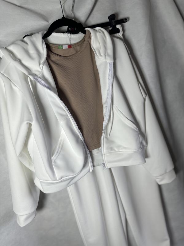 💥💥💥BESTSELLER 💥💥💥 🔸Костюм 3в1 (худі+джогери+топ) ▪️Тканина: дорога трьохнитка «петля»; рубчик гумка Туреччина ▪️Розмір: 42-44 ▪️новий з біркою 🏷 Ціна опт: 1200 грн🔥 💬Крутий костюм трійка: зіп худі, джогери та топ🔝 Худі оверсайз з карманом кенгуру, глибокий ПОДВІЙНИЙ капюшон, манжети з основноï тканини. Джогери високої посадки, з кишенями, на манжетах резиночки. Якісна тканина «петля».