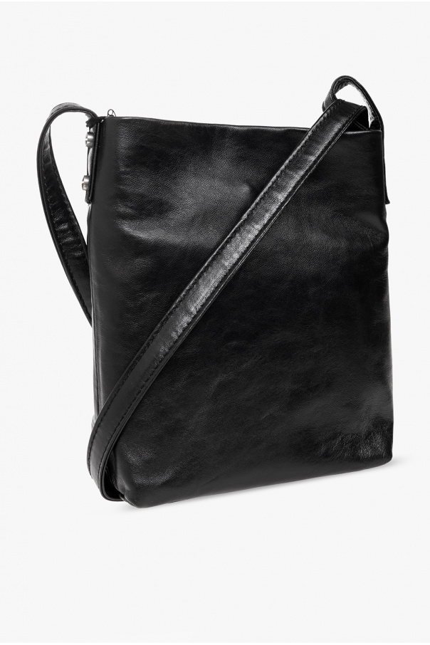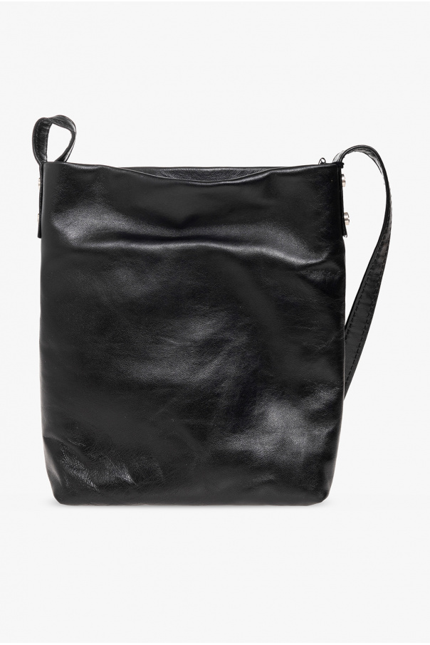 Black ‘Eline Mini’ shoulder bag from Ann Demeulemeester. Crafted from leather, this design features a single button fastening, a shoulder strap, silver-tone metal hardware and one internal compartment with a slip pocket.