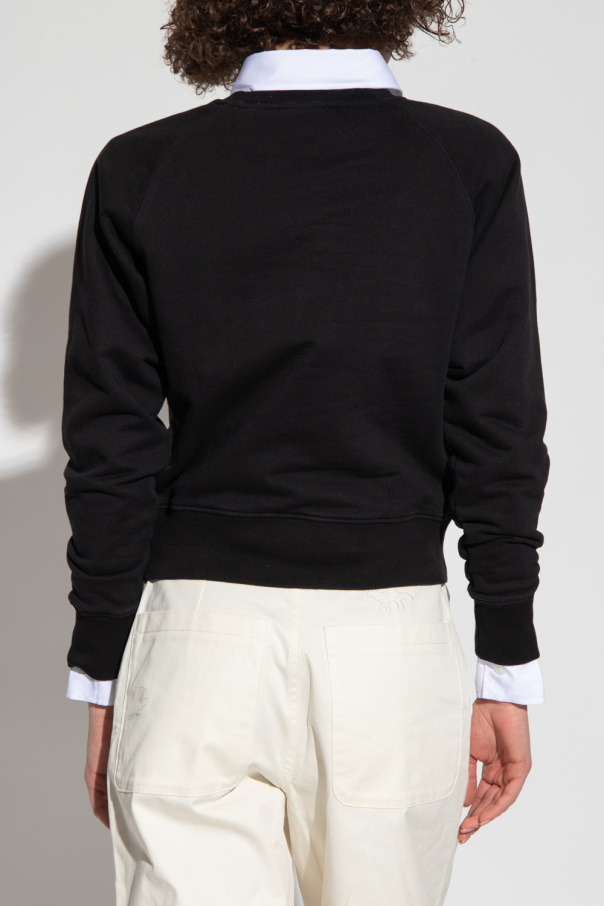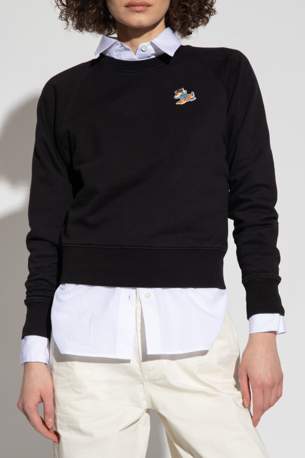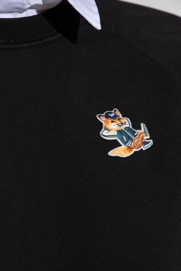 Black crewneck sweatshirt from Maison Kitsune. Crafted from cotton jersey, this style features a logo patch, long sleeves and elasticized trims on the collar, bottom hem and cuffs.