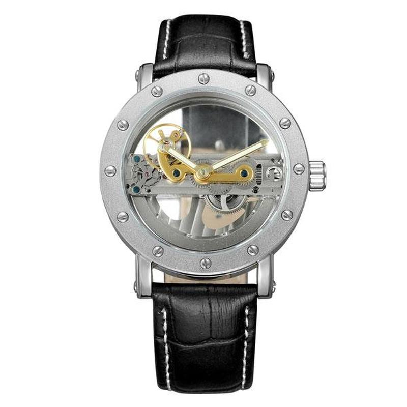 Forsining Мужские часы Forsining Air Silver Forsining - бренд надежных механических наручных часов, в основе которых механизм ERS. Он обеспечивает точность хода, надежность и качество аксессуара. Все экземпляры этой марки имеют автоматический подзавод, выполнены с использованием минерального стекла и нержавеющей стали. Все это стало залогом высокого качества, подтвержденного официальной 12-месячной гарантией. - - Тип механизма: Механический - Характеристики механизма: Автоподзавод, лимитированная серия X - Wind (Япония) - - Особенности: Полностью прозрачные, механизм "X - Wind" (работает только от автоподзавода с большим запасом хода), видно работу всех частей механизма - - Форма корпуса: Круглый - Материал корпуса: Сплав металлов - Водостойкость: Базовая - дождь - Стекло: Минеральное - Задняя крышка: Прозрачная - Цвет корпуса: Серебристый - Размеры, мм 40х10 - - Материал ремешка: Кожаный - Цвет ремешка: Черный - Застежка: Классическая - Длина ремешка: 25 см (регулируется) ГАБАРИТЫ: - - Диаметр 40 мм - Толщина 10 мм ГАРАНТИЯ: 12 месяцев