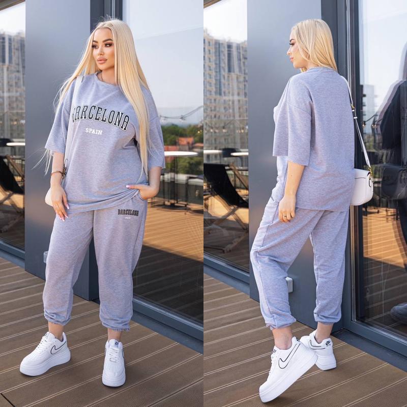 Стильный молодежный костюм свободного кроя. Удлиненная футболка и свободные на бедрах брюки в длине 7/8 - отличный повседневный выбор👌 ОТРИМАЛИ В КІЛЬКОСТІ! Хит продажи!!️‼️‼️ Костюм Размеры : 42-44; 46-48; 50-52;54-56 Цена - 880 грн МОД#1335 Тканина: двонитка, накат Качество супер✔️ ВЫМЕРЫ 42-44 Футболка Ог 118 Длина 70 Рукав от шеи 44 Штани ОТ от/до 72/110 ОС 116 Длина Внешний шов 100 Внутренний шов 70 46-48 Футболка Ог 128 Длина 71 Рукав от шеи 46 Штани ОТ от/до 76/120 ОС 122 Длина Внешний шов 102 Внутренний шов 70 50-52 Футболка Ог 132 Длина 73 Рукав от шеи 48 Штани ОТ от/до 82/128 ОС132 Длина Внешний шов 104 Внутренний шов 71 54-56 Футболка Ог 140 Длина 74 Рукав от шеи 48 Штани ОТ от/до 84/142 ОС 136 Длина Внешний шов 105 Внутренний шов 71