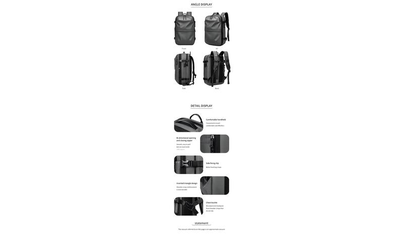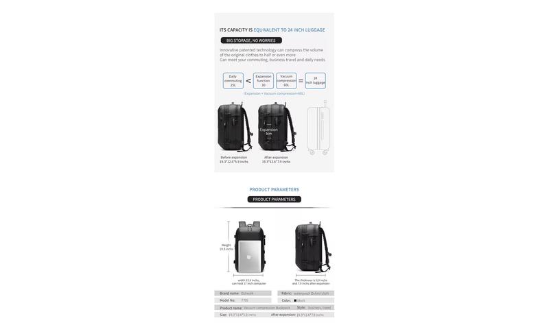 Преміум матеріали Наша дорожня сумка виготовлена з високоякісних матеріалів та відрізняється міцністю та дічністю. Колекція рюкзаків виповнена з Преміальних матеріалів ідеально підходить для звичайних мандрівників, які цінують організованість і комфорт під час подорожей. Вперше всі сумки оснащені інтегрованим замком TSA, що гарантує безпеку всіх ваших речей. Зовнішні деталі, такі як передні ручки, сучасний принт, вакуумне відділення роблять цю колекцію незамінною річчю для будь-якого мандрівника. - Вбудована вакуумна система - Відділення для ноутбука - Кілька відділень - Можливість розширення для максимального простору - Стильний дизайн - Високий комфорт і стійкість до запахів - Преміальний матеріал Особливості: - ідеальний варіант для подорожей; - вакуумна система дозволяє зменшити об'єм рюкзака; - ергономічна спинка і лямки з нагрудним ременем; Екстер'єр: - на фронтальній частині розміщена кишеня на блискавці; - ручка для переміщення ; - стягуючі ремені з регулюванням довжини, застібаються на фастекси; - нагрудний ремінь на лямках з регулюванням висоти; - ремінь для фіксації рюкзака на ручці валізи; - прихована бічна кишеня. Інтер'єр: - велике відділення має блискавку по периметру, яка дозволяє повністю його відкрити і зручно розмістити речі; - фіксуючі ремені; - сітчаста кишеня на блискавці; - плоске відділення має кишеню для ноутбука, яка фіксується стрічкою на липучці. Технічні характеристики Обсяг - 22-48 літрів (при використанні компресії) Розміри - 49 x 32 x 15-20 (Д x Ш x Г) Максимальна ширина 20 см при використанні подовжувача Вага - 1,7 кг Матеріали Основна тканина: - 100% перероблений нейлон 900D - воскове покриття для обличчя та PU-покриття - не містить PFC Тканина задньої панелі: - 100% поліестер, блокований підкладка: - 100% поліестер 230T Сітка: - 100% поліестер стрічка: - поліпропіленова стрічка - нейлонова стрічка в формі ялинки : поліетилен Піни, піни EVA, неопренові піни Запатентована система вакуумного стиснення Airback Наша дорожня сумка оснащена вбудованою вакуумною системою, яка дозволяє максимально збільшити простір для упаковки, зменшивши об'єм одягу та інших предметів, які можна пакувати. Більше не потрібно хвилюватися про те, щоб упакувати або втиснути додаткову куртку! Ретельна організація Дорожня сумка також має кілька відділень для ретельної організації. Ці спеціальні кишені та відділення дозволяють розділити ваші речі, полегшуючи їх пошук і зберігаючи ваші речі акуратними під час подорожі. Потрібно більше місця? Наша дорожня сумка розширюється, забезпечуючи додаткове місце, коли вам це потрібно, ідеально підходить для тих сувенірних подорожей у зворотному напрямку.