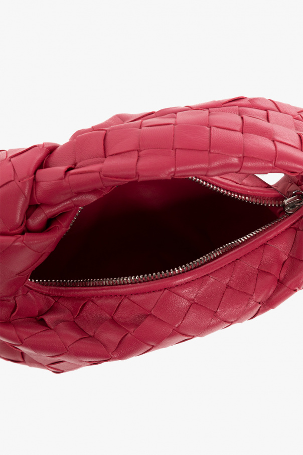 Pink ‘Jodie Mini’ hobo handbag from Bottega Veneta. Crafted from lamb leather accentuated with the brand's signature Intrecciato weave, this design features a zip fastening, a half-round handle with a distinctive knot, silver-tone metal hardware and one internal compartment.