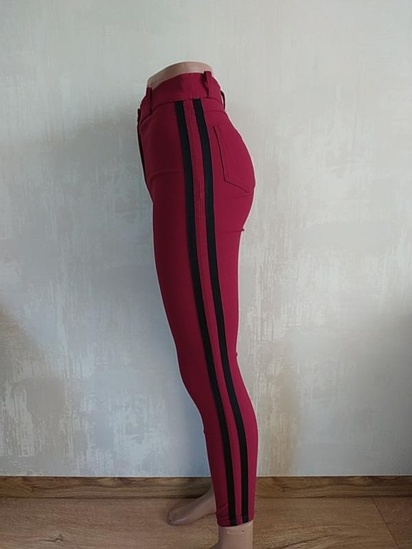 Летние штаны, ткань тонкая и приятная к телу, очень хорошо тянется. По бокам пришиты лампасы. Посадка высокая Подойдёт на размер S-M(дополнительные замеры по требованию) Цвет бордовый Состояние очень хорошее