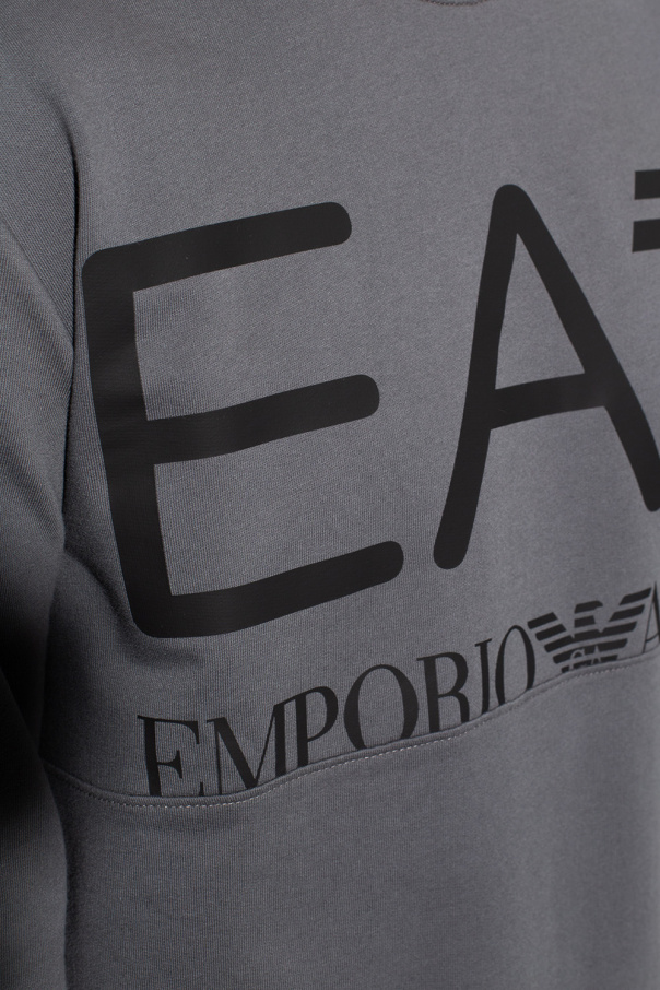Dark grey crewneck sweatshirt from EA7 Emporio Armani. Made of cotton, this garment features a printed logo pattern in black and ribbed trims at the neck, hem and cuffs.