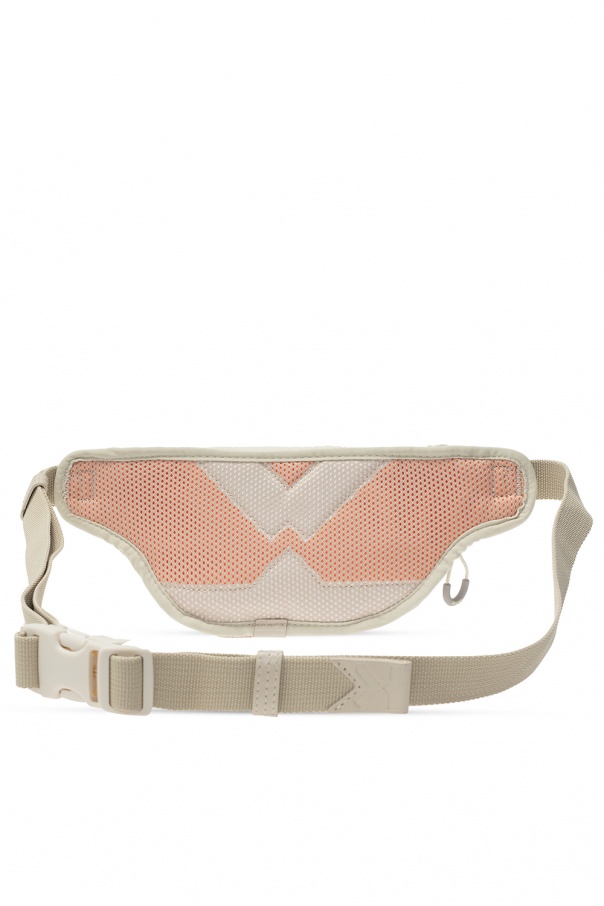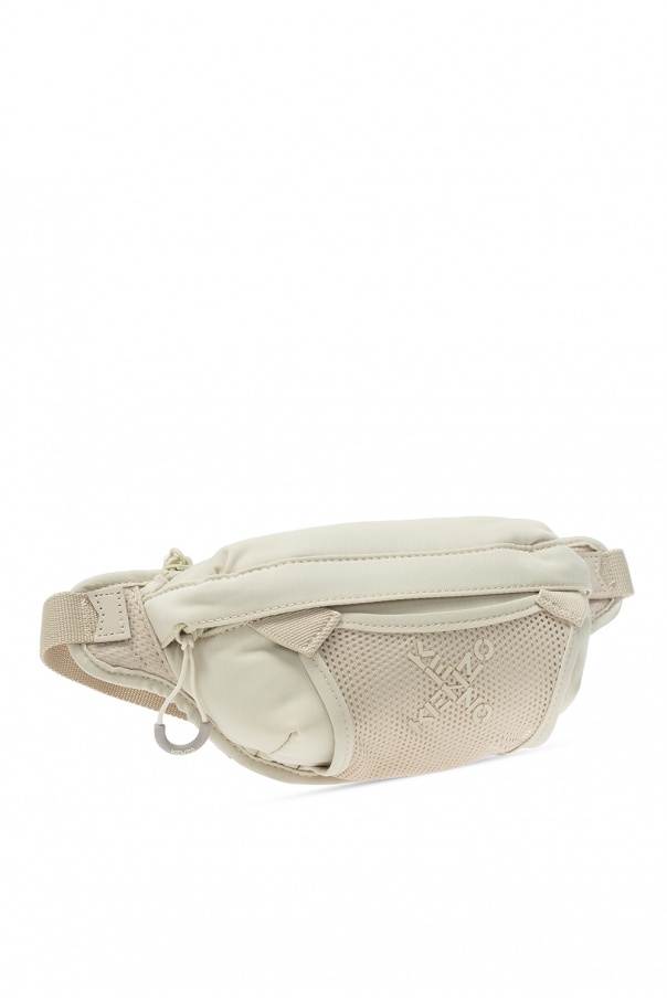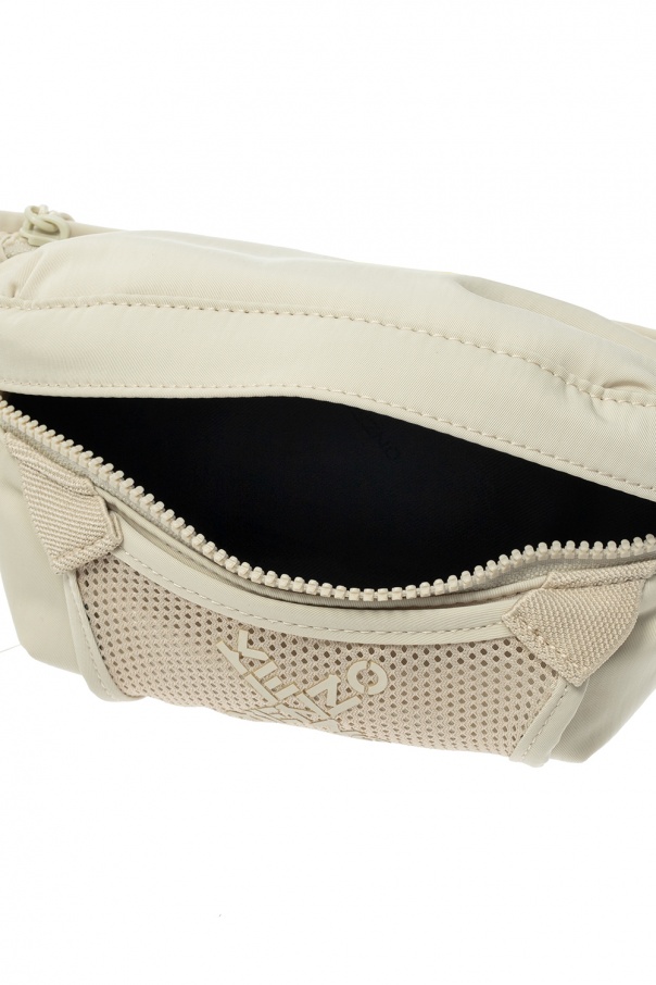 Beige belt bag from Kenzo. Fastened with a zip, this item features a mesh panel with a white logo print, zip pocket at the back, adjustable belt and one internal compartment.