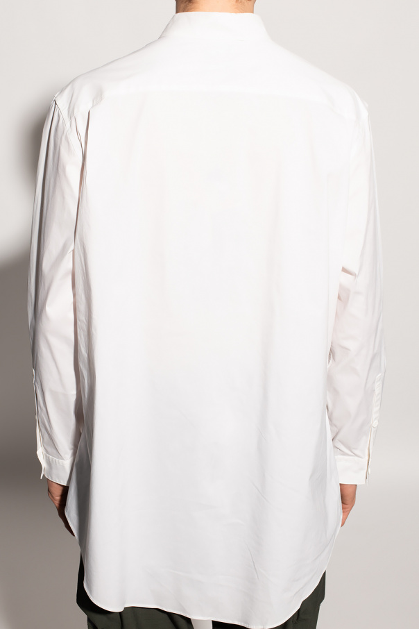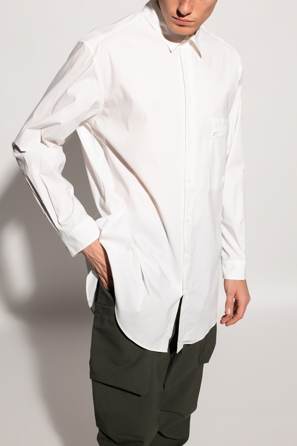 White shirt from Y-3 Yohji Yamamoto. Embellished with a white graphic print with the brand\'s logo, this style features button fastenings, one zip pocket and long sleeves with button cuffs.