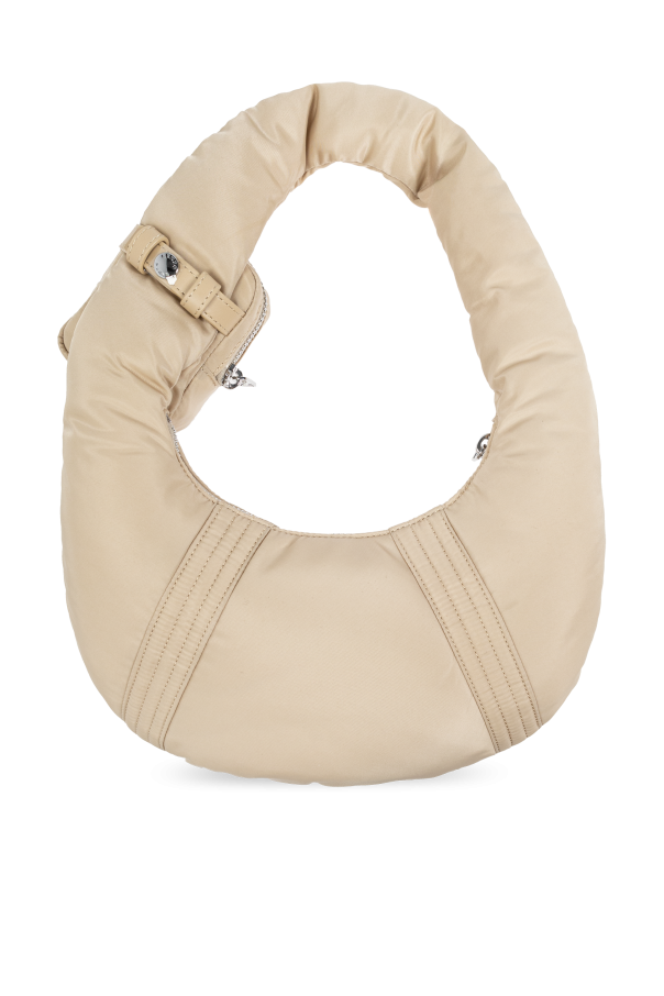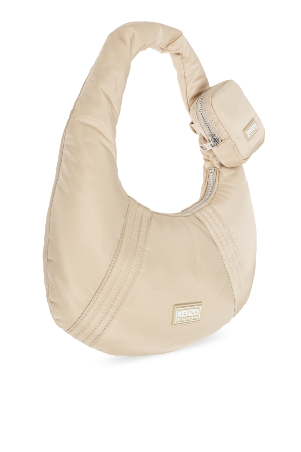 Introducing the Kenzo Shoulder Bag, a quintessential accessory that epitomizes elegance and functionality. Crafted from premium nylon with a silky satin finish, this exquisite piece boasts a unique crescent shape that adds an air of distinctive character to its minimalist design. The smooth, uniform texture of the material, devoid of any patterns or textures, lends the bag a sleek and sophisticated appearance. The front of the bag is adorned with a prominently displayed Kenzo logo on a metal plaque, enhancing its elegance and brand recognition. An additional, smaller charm, also featuring the logo, is attached to the strap, adding a touch of exclusivity. Secured with a zipper closure, the bag ensures the safety of your belongings, while the interior, lined in a color matching the exterior, includes a smaller pocket for storing essential items. The wide, comfortable strap is designed for shoulder wear, as demonstrated by the effortless grace with which the model showcases the bag. Accompanied by a detachable pouch that also closes with a zipper, this shoulder bag is not only a statement of luxury but also a testament to practicality. Inside, it offers a spacious compartment along with a slip pocket, making organization seamless and stylish. Why Purchase This Product? Elegance and Practicality: A harmonious blend of high-end design and functional features. Exclusive Kenzo Design: Stand out with the unique crescent shape and distinguished Kenzo branding. Quality Materials: Crafted from high-quality nylon with a luxurious satin finish for durability and style. Organizational Ease: Equipped with a main compartment, an interior slip pocket, and a detachable pouch for versatile storage options.