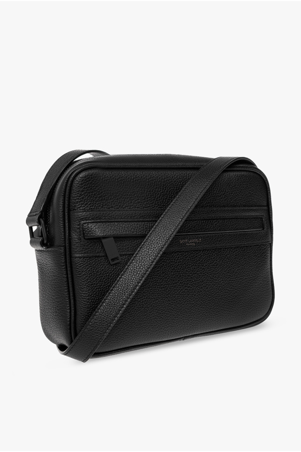 Black ‘Camp’ shoulder bag from Saint Laurent. Made of calf leather, this model is complete with a zip fastening, logo print, front zip pocket, adjustable shoulder strap, black metal hardware and one internal compartment with one zip pocket and one slip pocket.