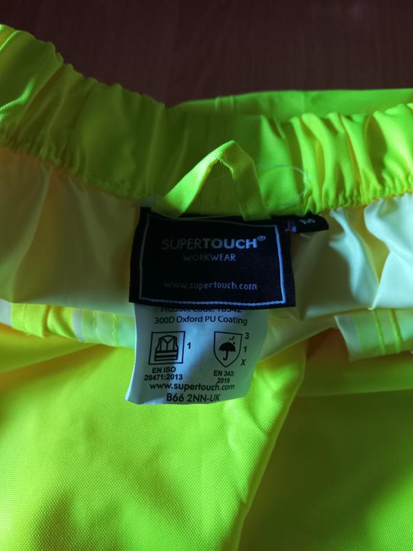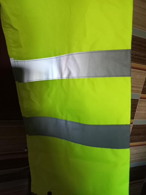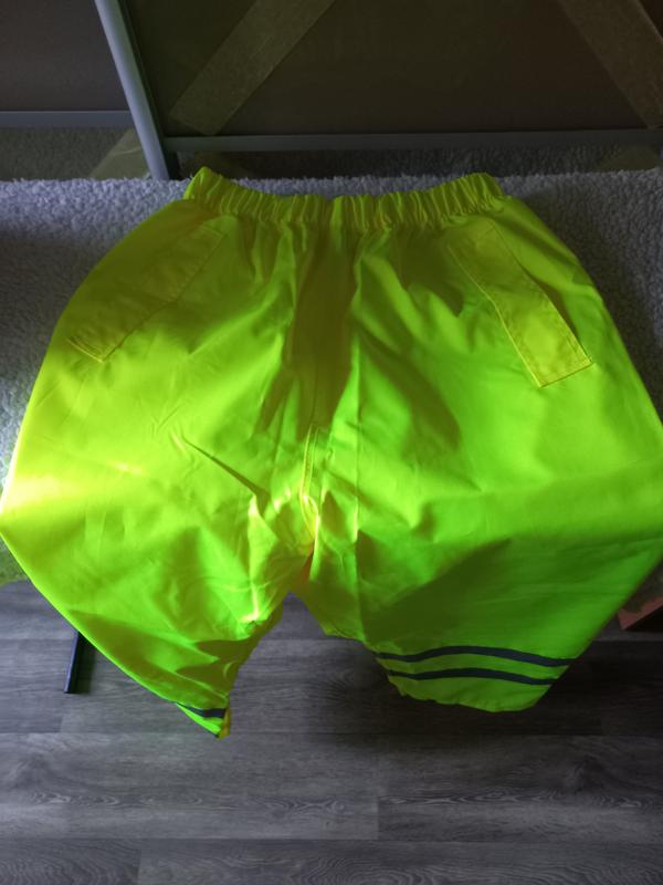 Размер М. Подходят для талии 81-86, роста 172-180. Состояние идеальное. Брюки Hi-Vis с талией на эластичной резинке. Идеально подходят для работы на открытом воздухе. Защитят вас и вашу одежду от непогоды. 300D оксфордская искусственная ткань. Светоотражатели. Карманы сквозные для доступа к внутренней части одежды. Проклеенные швы. Регулируемые кнопки на щиколотке.