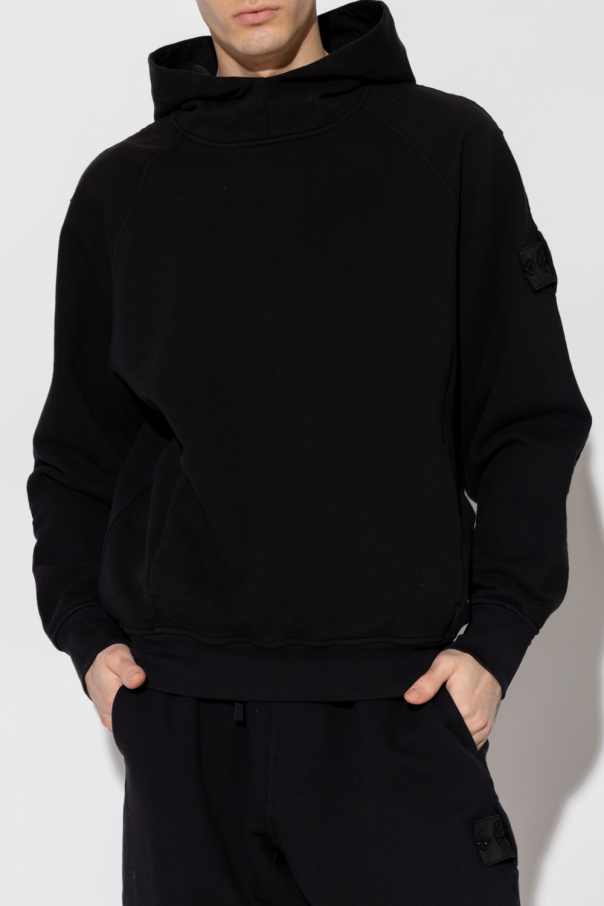 Black hoodie from Stone Island. Made of cotton, this design features a logo patch, slip pocket and ribbed trims at the hem and cuffs.