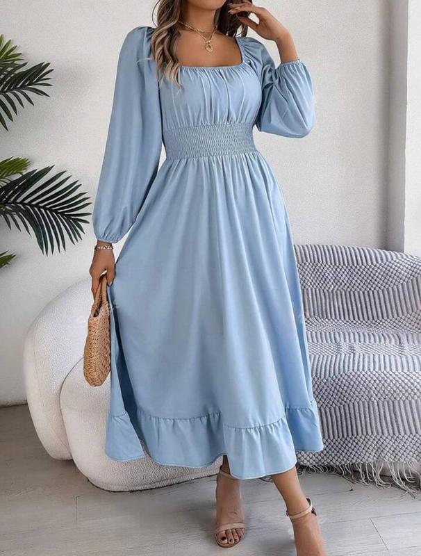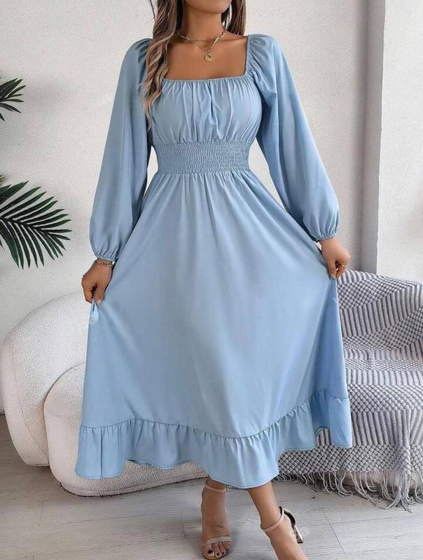 1427 Жіноча сукня Розмірний ряд S,M,L,XL Тканина софт Кольори блакитний, мокко, зелений, бордовий та чорний Талія резинка Дуже класна, стильна та універсальна модель