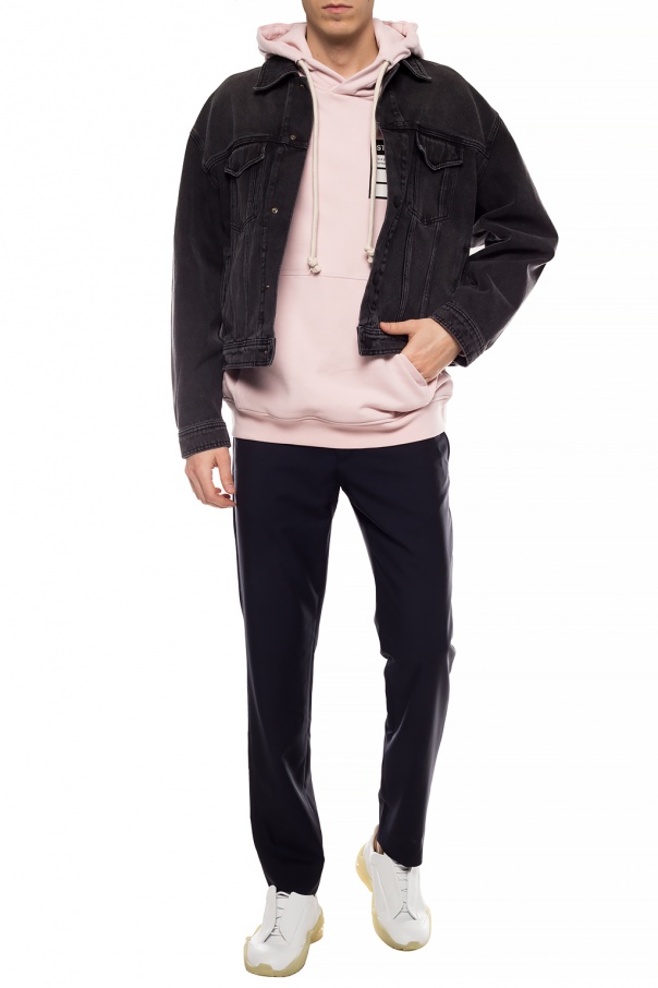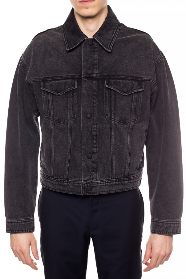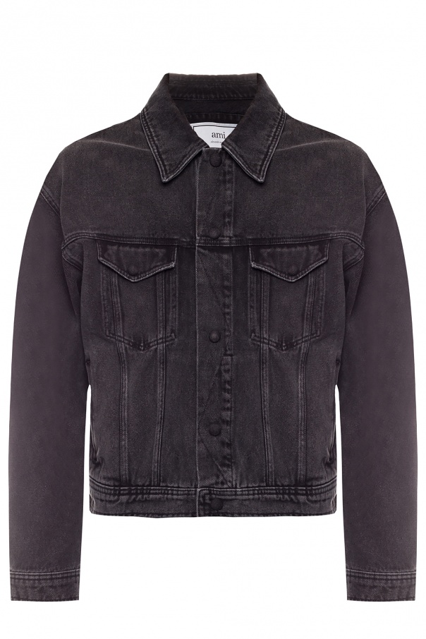 Dark grey denim jacket from Ami Alexandre Mattiussi. Snap fastenings. Two slip pockets and two flap pockets fastened with snaps on the front.