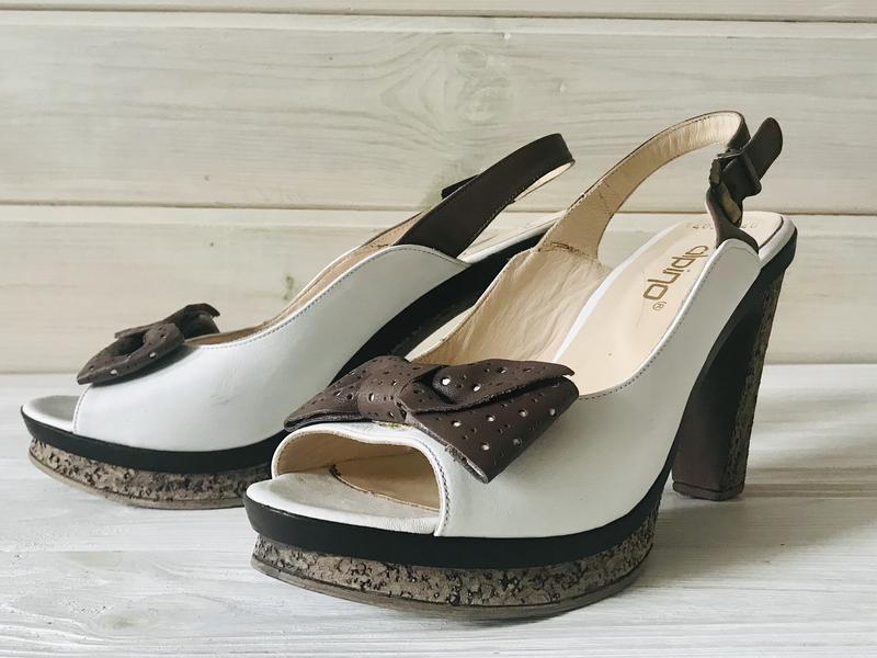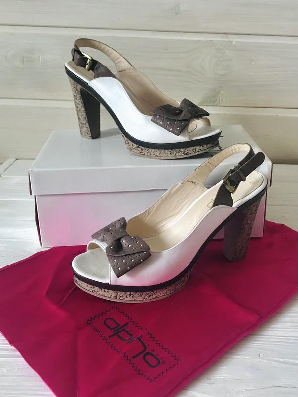 Очень милые босоножки с бантиками. Изнатуральной кожи. Подошва -имитация пробки, удобный, устойчивый каблук -10 см и платформа около 1.5 см Размер 40, идут на ногу 25,5-26 см. Идут с коробкой и фирменным атласным мешочком. Надела всего пару раз. Состояние идеальное, за исключением небольшой царапинки на правой ноге, в носке не заметно. Приложила фото. Подошва и каблуки как новые. Перешлю Новой почтой или Justin. Обмена и возврата нет! Смотрите и другие мои объявления. Добавляю много крутых вещей по приятным ценам! 🔥🔥🔥 Обновления каждый день!