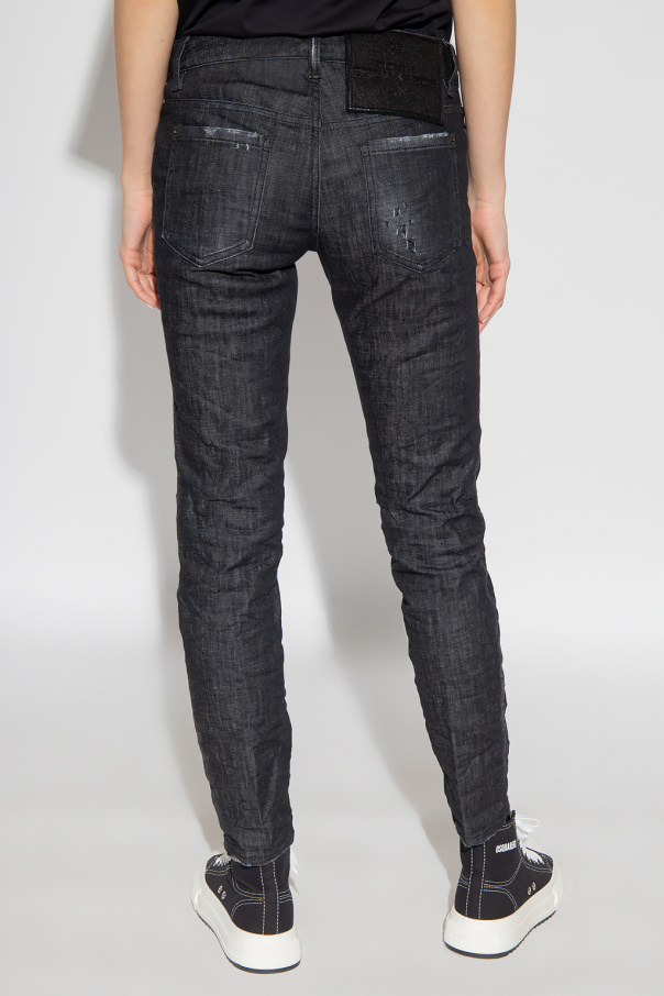 Dark grey ‘Jennifer’ jeans with a vintage effect from Dsquared2. Made of cotton, this pair features button fastenings, logo patch at the back, five slip pockets and tapered legs.