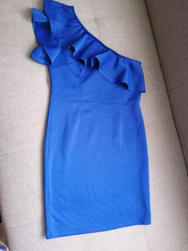 Красиве плаття насиченого синього кольору. З оголеним одним плечем. Вказано розмір L. Альо може бути на M, навіть на S. За замірами звертайтесь. Стан нового.
