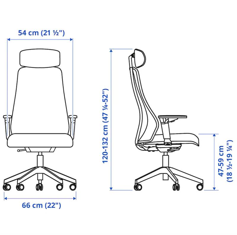Офісне крісло біле MATCHSPEL IKEA, 405.076.10 Ігрове крісло MATCHSPEL допоможе вам грати на максимальній швидкості. Все тіло отримує хорошу підтримку, а висоту стільця, підголівника та підлокітників можна регулювати так, щоб сидіти було дуже комфортно, коли гра починається. Функція регулювання нахилу з фіксацією підвищує стабільність і контроль в різних положеннях сидіння. Вбудована поперекова опора забезпечує підтримку spini та додаткове полегшення. Матеріал спинки з сітки дихає, що особливо приємно, при тривалому сидінні. Підлокітники можна налаштувати під ваші потреби, що регулюються по висоті, щоб зменшити навантаження на руки та плечі. Регульована висота сидіння забезпечує зручне положення сидячи. Оббивка сидінь, схожа на шкіру, міцна і легко миється. Якісна піна високої щільності збереже крісло зручним протягом багатьох років. Стабільний каркас з вуглецевої сталі та фанера, сертифікована FSC, витримає багато довгих матчів. Ролики безпеки мають чутливий до тиску гальмівний механізм, який утримує крісло на місці, коли ви встаєте, і автоматично відпускається, коли ви сідаєте. Ролики мають гумове покриття для плавного ходу по будь -якому типу підлоги. Цей стілець був випробуваний для офісного використання та відповідає вимогам щодо міцності та стабільності, наведеним у таких стандартах: EN 1335 та ANSI / BIFMA x5.1. РОЗМІРИ ТОВАРУ: Глибина : 66 см Максимальна висота : 132 см Максимальна висота сидіння : 59 см Мінімальна висота сидіння : 47 см Глибина сидіння : 48 см Ширина сидіння : 54 см Перевірено на : 110 кг Ширина : 66 см