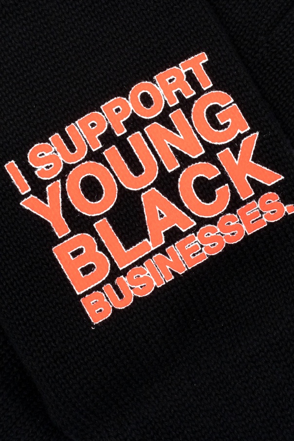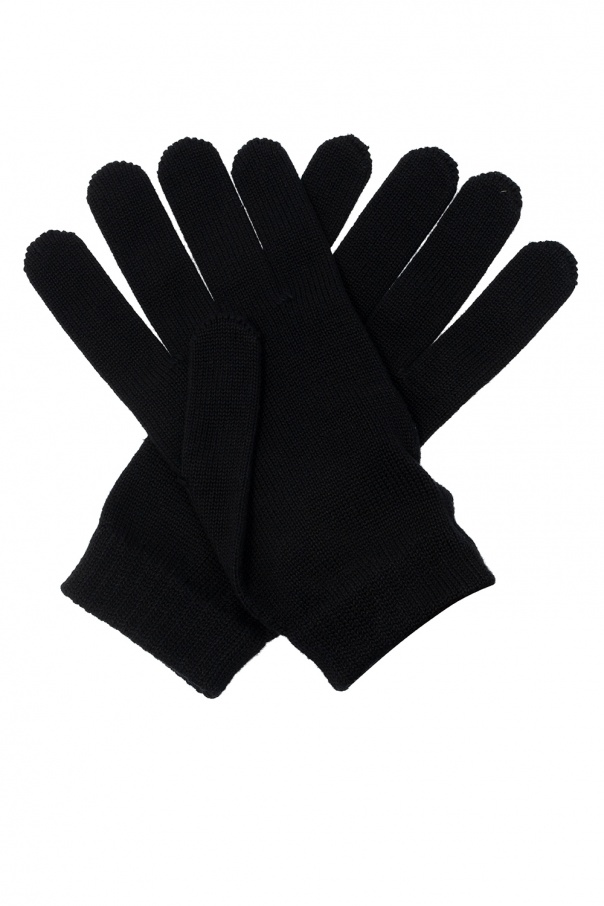Black gloves from Off-White. Crafted from cotton, this design features printed lettering in orange and white.