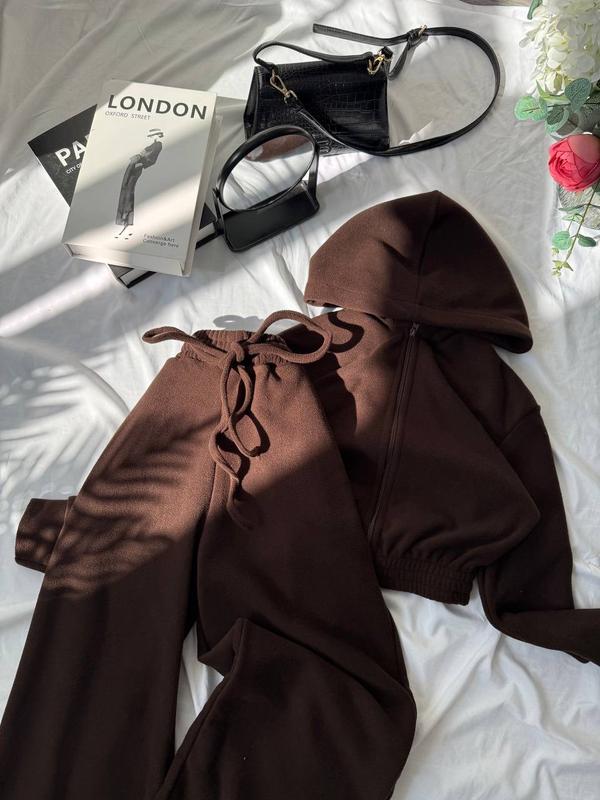 Костюми з преміального мʼякенького флісу Низ штанів на затяжках Кольори: молочний, графіт, чорний, шоколад ➡️Мод. 1840 ➡️Розміри: 42-44; 46-48; ➡️Тканина: Фліс полар (Premium) Довжина кофти 42см, штанів 104см ‼️Найкрайщі ціни, новинки, наявність‼️