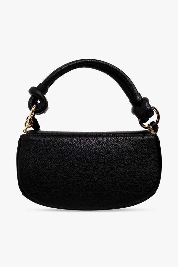 Black ‘Glam’ shoulder bag from Salvatore Ferragamo. Crafted from grained calf leather, this design features a flap with a distinctive fastener, a half-round handle, shoulder strap accentuated with decorative knots, gold-tone metal hardware and one internal compartment with a slip pocket.