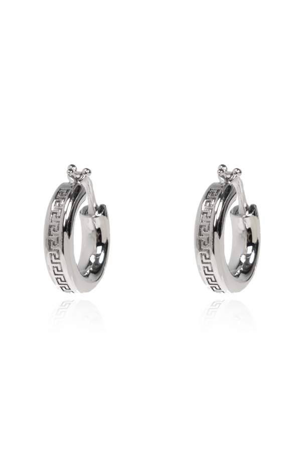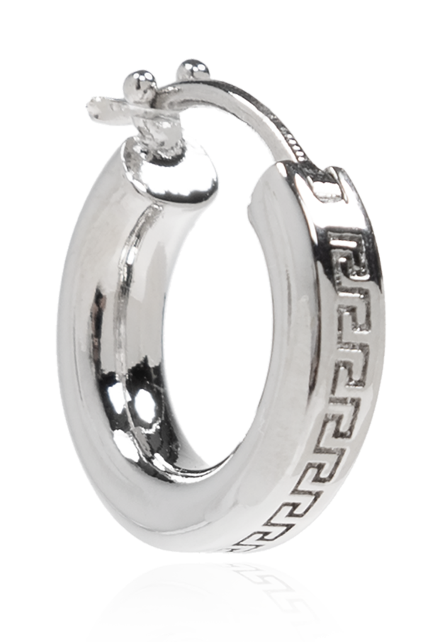 Introducing the Round Earrings with Greek Motif, a sublime creation by the illustrious house of Versace. Crafted from the finest brass, these earrings exude a timeless elegance, capturing the essence of luxury through their polished silver hue. The earrings present a classic, smooth silhouette adorned with a delicately etched Greek pattern, reflecting the brand\'s signature fusion of tradition and modernity. Their gleaming surface and standard hoop clasp ensure both a striking aesthetic and ease of wear. This piece is a testament to Versace\'s renowned design ethos, where the classical charm meets contemporary flair, embodying a lifestyle that celebrates individuality and strength. Why Purchase This Product? Iconic design by Versace, synonymous with luxury and style. Elegant Greek motif etched on a sleek, polished surface. Crafted from high-quality brass, ensuring durability and shine. Comfortable hoop clasp for effortless wearability. A perfect blend of classic elegance and modern sophistication.