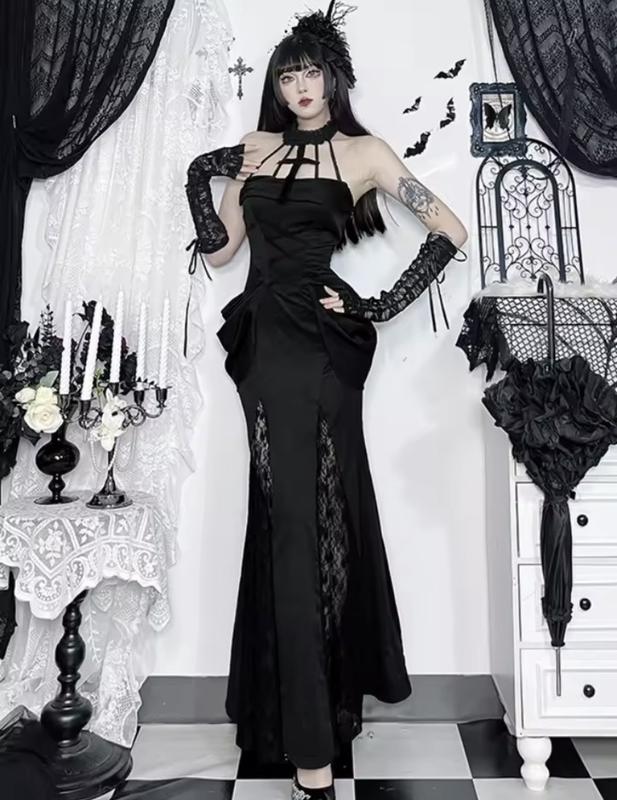 Нікому нічого просто так не відправляю : умови є на сторінці. Безпечна угода -оплата шафі , безпечна угода -повна оплата або передоплата 110 грн на карту продавця ; або повна оплата чи передоплата 110 на карту продавця ! В наявності. Гарної якості ! Новинка . Довга сукня з чокером чорна , стиль готика гранж косплей Лолита . S: довжина груди талія стегна Матеріал : поліестер
