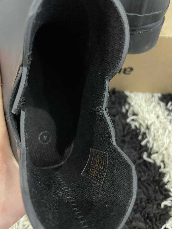 Резиновые сапоги, изготовленные из прочного каучука. Рельефная подошва не скользит. Очень круто и стильно выглядят, сразу и не поймут что резина, напоминают кожаные сапоги. Имею такие же, очень довольны🖤 Полная длина стельки-23 см. Стан идеален.