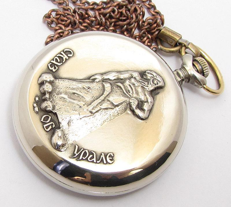 Часы МОЛНИЯ - "Сказ об Урале", мельхиор, оригинал. Брежневские. Часы из коллекции. Часы обслуживались мастером, точный ход. Стекло без трещин и царапин. Точность и запас хода соответствует паспортным данным. Родная цепочка на фото идет в комплекте с часами. На подарок, для коллекционирования или ежедневного ношения. Все фотографии актуальны, Вы получаете товар, указанный в объявлении и на фото. Надежная упаковка, быстрая отправка. Пишите, отвечу на все вопросы. Смотрите другие мои объявления, Всем удачных покупок, Слава Украине!