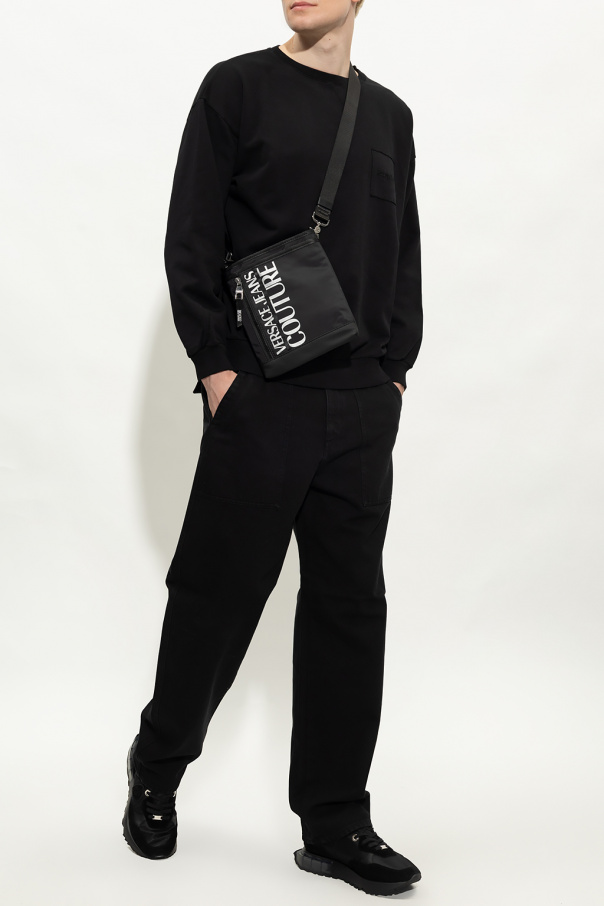 Black ‘Bellae’ crewneck sweatshirt from Philippe Model. Crafted from cotton jersey, this style features an embroidered logo and ribbed trims on the edges.